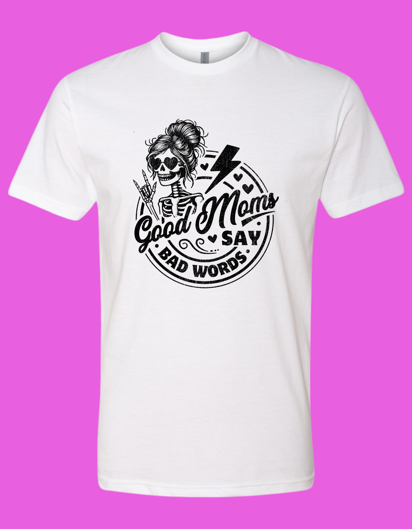 “Good Moms Say Bad Words — and we’re here for it! This cheeky graphic tee is perfect for moms who love hard, laugh loud, and aren’t afraid to drop a few colorful phrases. Featuring a cool skeleton mom design with attitude to spare, this soft and comfy shirt is great for everyday wear or gifting to your favorite unapologetic mama. Because motherhood isn’t always sugar and spice—sometimes it’s a little bit rock and roll.” 💀⚡💬