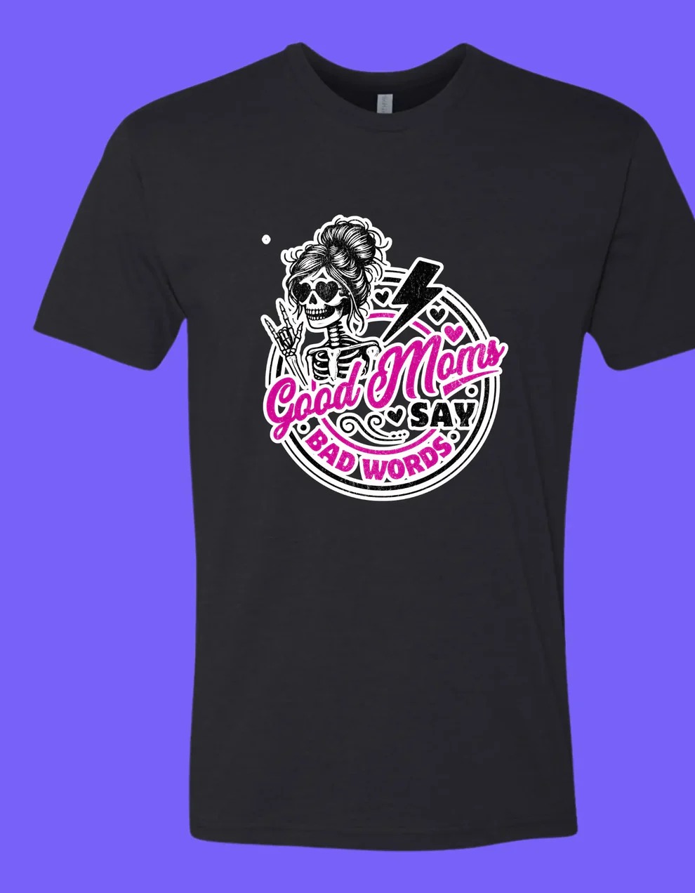 Our “Good Moms Say Bad Words” tee celebrates motherhood in all its messy, hilarious glory. Featuring a crisp white shirt with bold pink lettering, it’s the perfect mix of cute and cheeky for every mom who’s ever muttered something under her breath after stepping on a Lego.