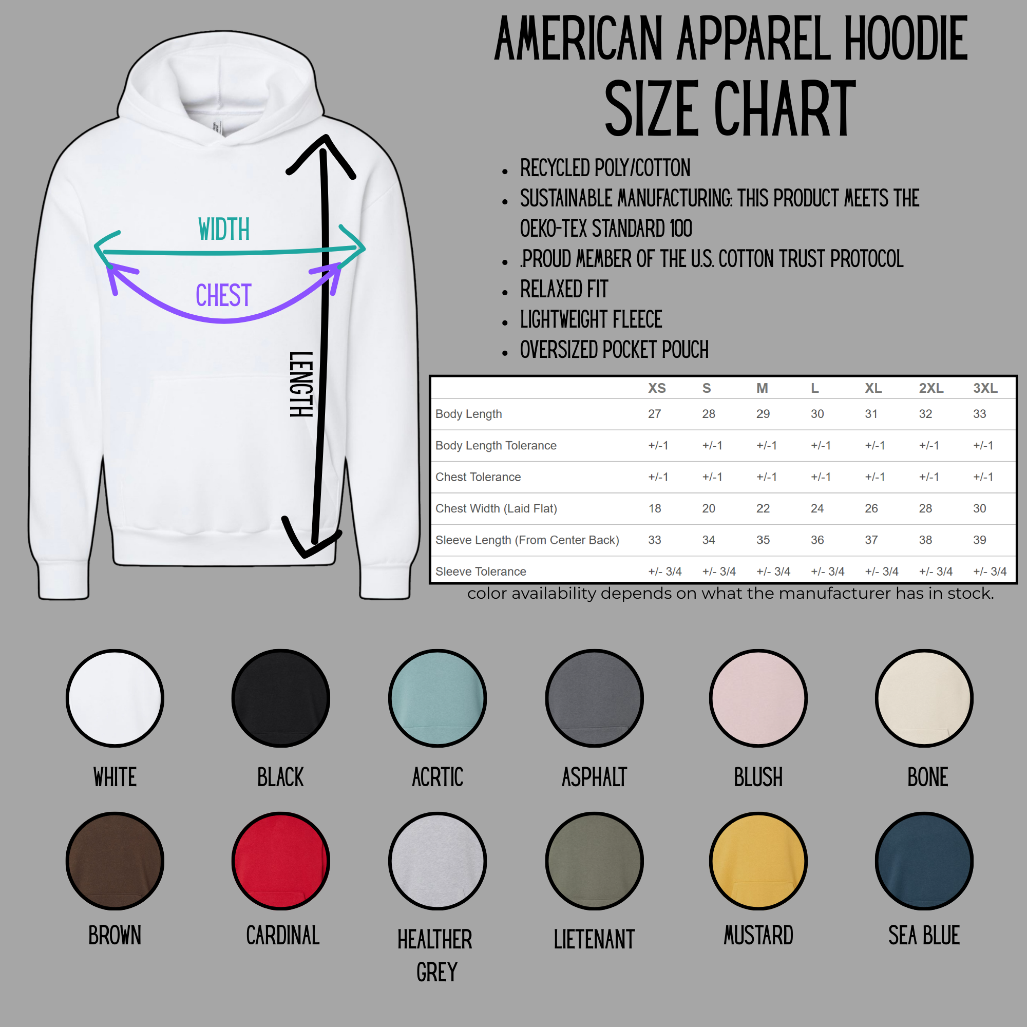 This hoodie is available in two colors depending on manufacturer availability.