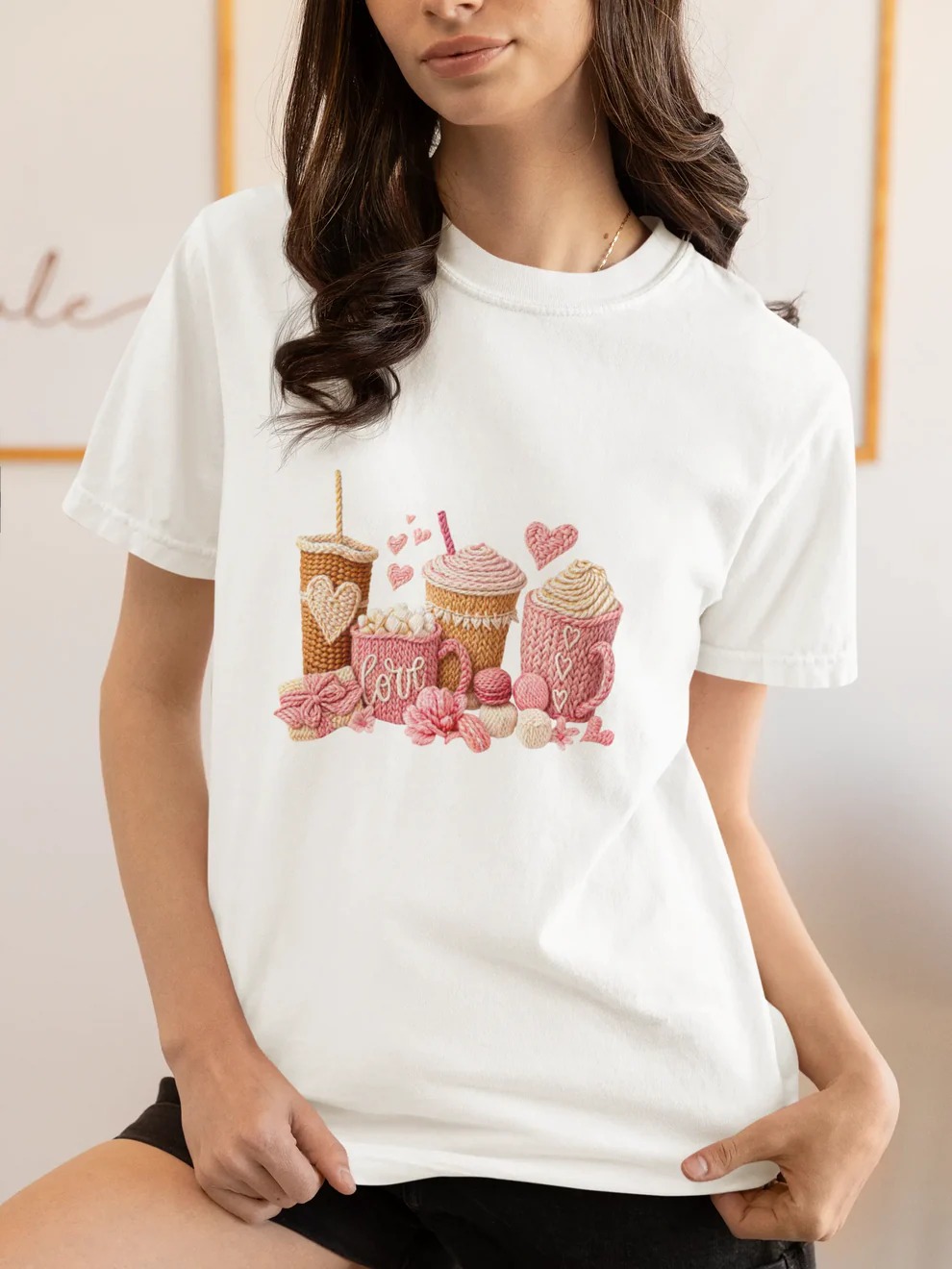 This is your sign to romanticize your coffee routine. The Love & Lattes Valentine T-Shirt features a beautifully detailed illustration of cozy coffee cups, sweet pink hearts, and soft Valentine tones—all wrapped in an aesthetic, warm design that feels equal parts comfy and cute.