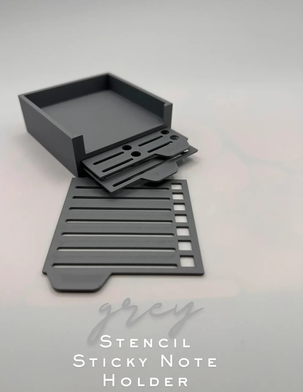 • Grey Stencil Sticky Note Holder – Comes with interchangeable stencil trays for quick doodles, lists & on-the-go creativity