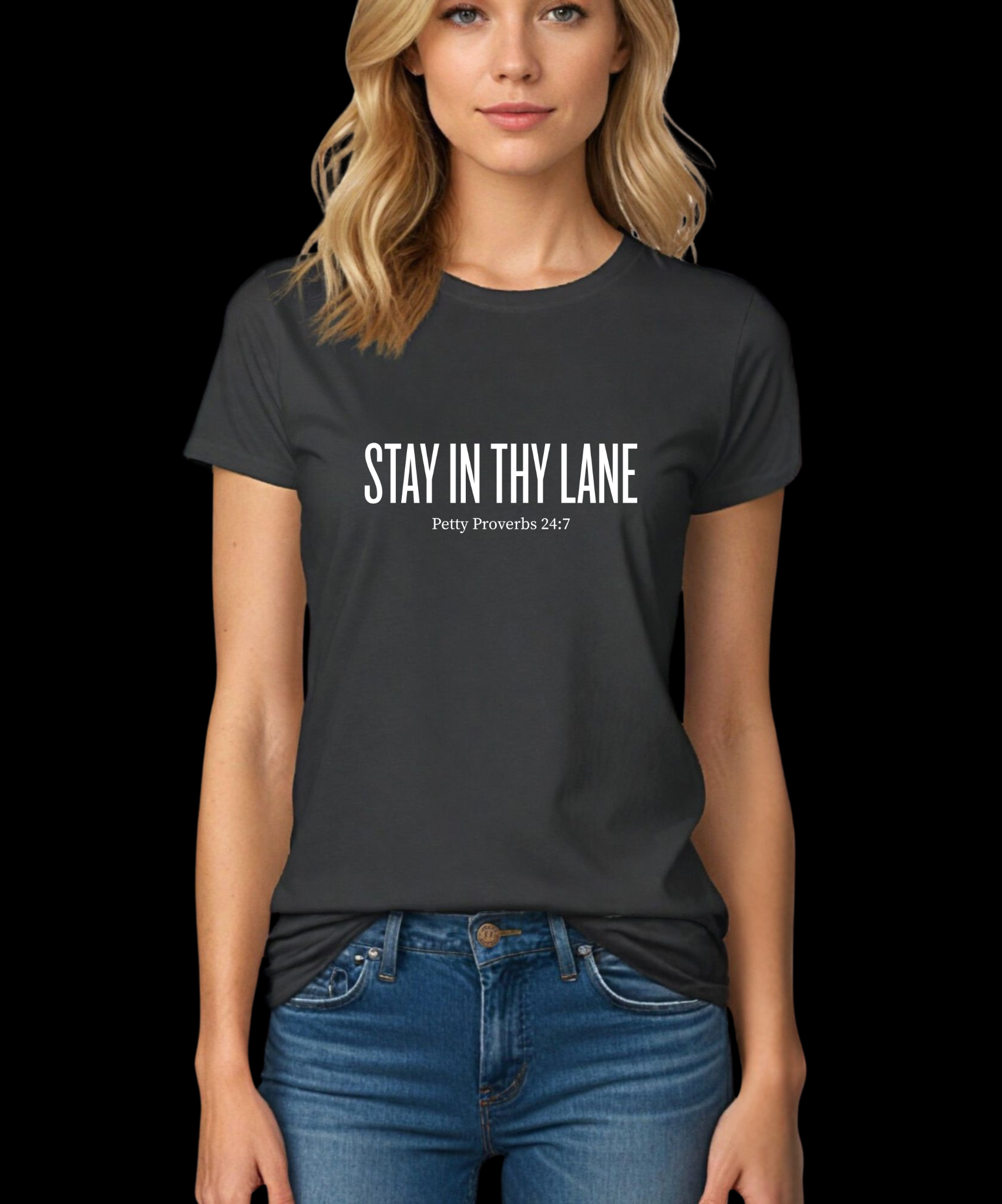 This bold design puts a modern, cheeky twist on Proverbs with “Stay In Thy Lane.” It’s the perfect mix of humor and message for anyone who appreciates a clever take on staying focused and minding their own path.