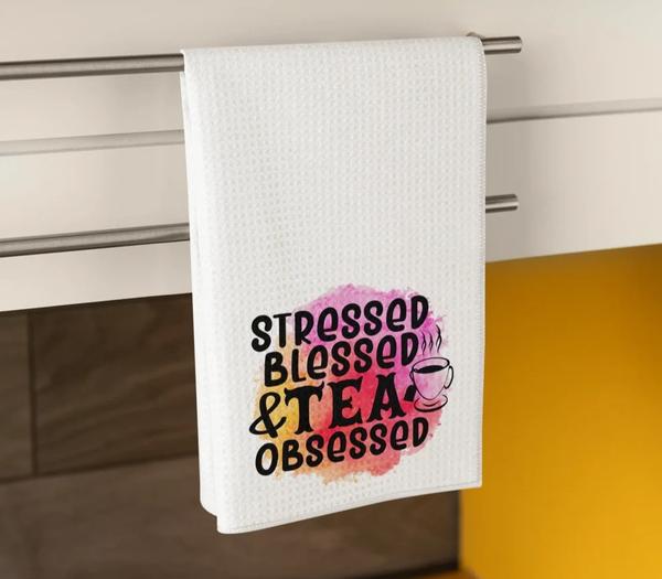 Stressed, Blessed & Tea Obsessed Tea Towel
