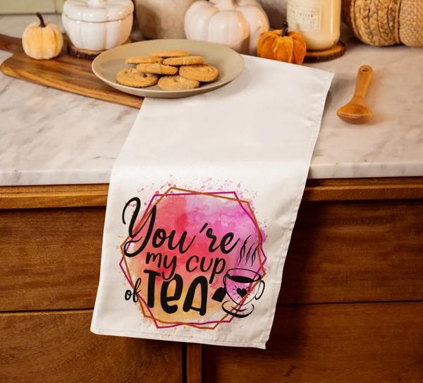 This decorative kitchen towel blends functionality with feel-good design — because when something (or someone) is your cup of tea, you know it!